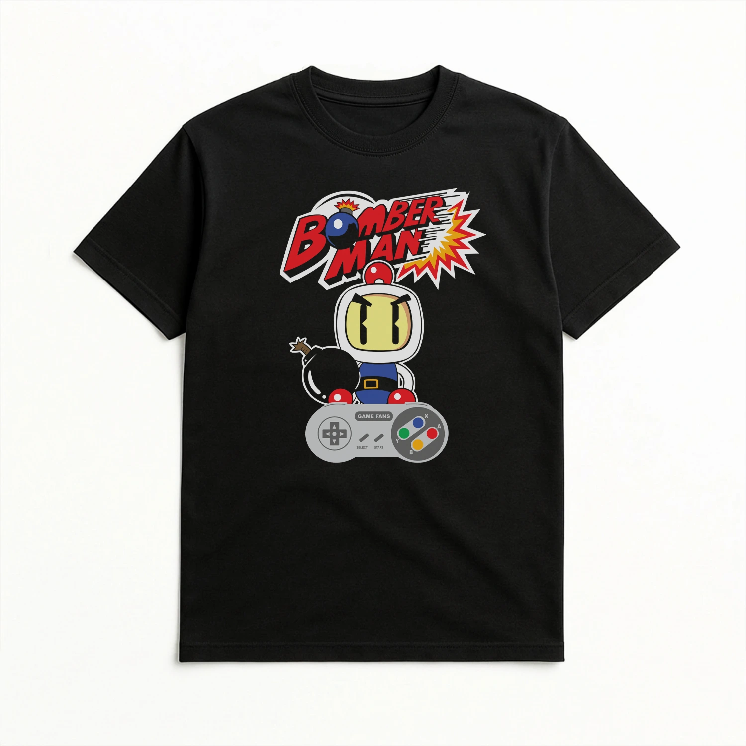 L’explosion de nostalgie 16-bit sur vos épaules, replongez dans l’âge d’or des jeux de salon avec ce t-shirt « Bomber Man x SNES ».