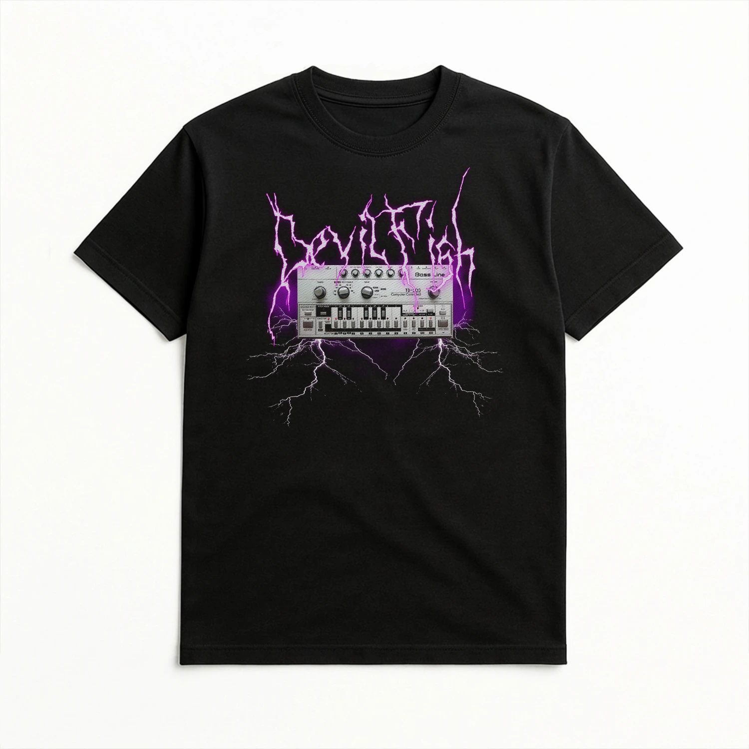 Affirme ton style avec ce t-shirt noir streetwear inspiré de la légendaire TB-303 Devil Fish, symbole culte de la musique acid house et techno underground.