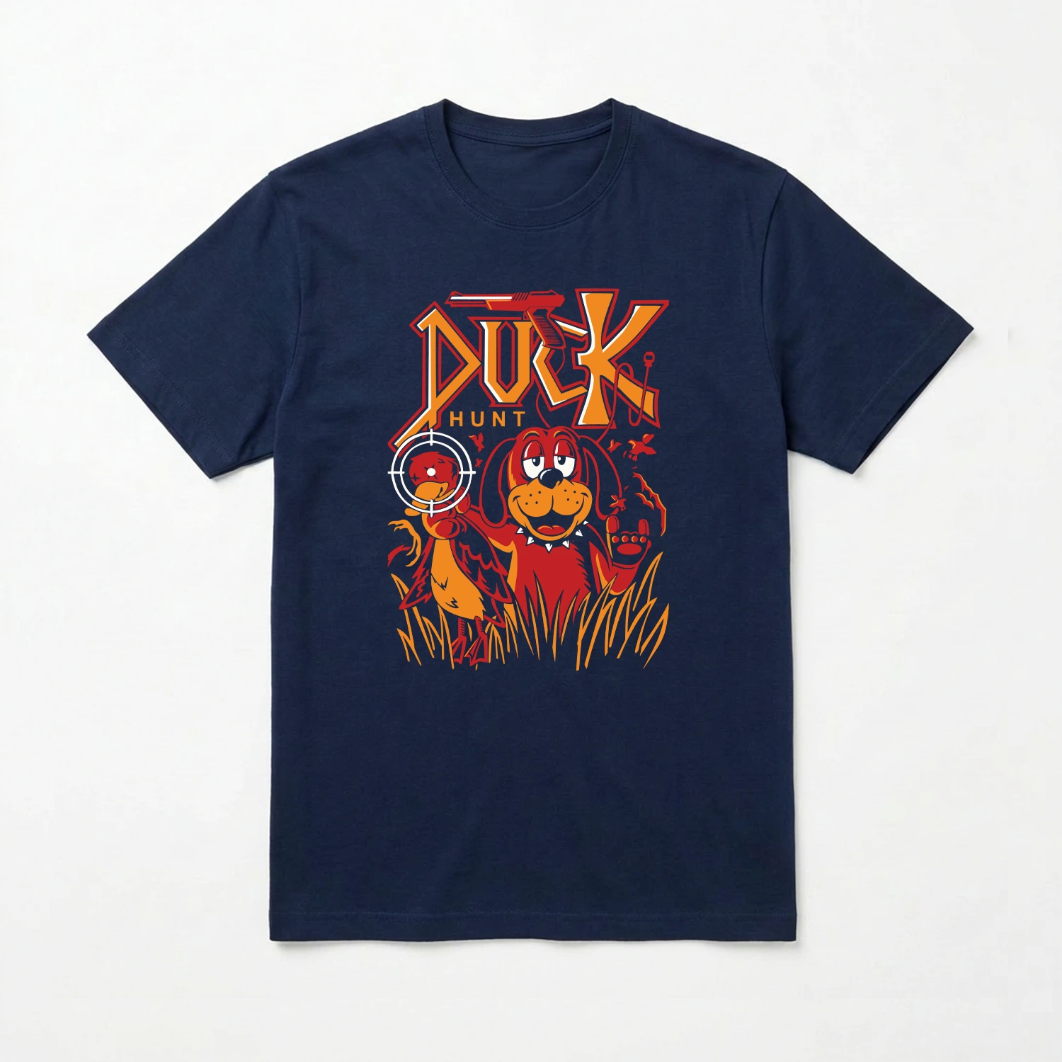 Revivez l’âge d’or du jeu vidéo avec ce t-shirt noir “Duck Hunt”, inspiré du célèbre jeu de tir lancé en 1984 sur Famicom et en 1985 sur NES. Icône incontournable de l’ère 8-bits, Duck Hunt a marqué toute une génération grâce à son gameplay simple, fun et addictif.