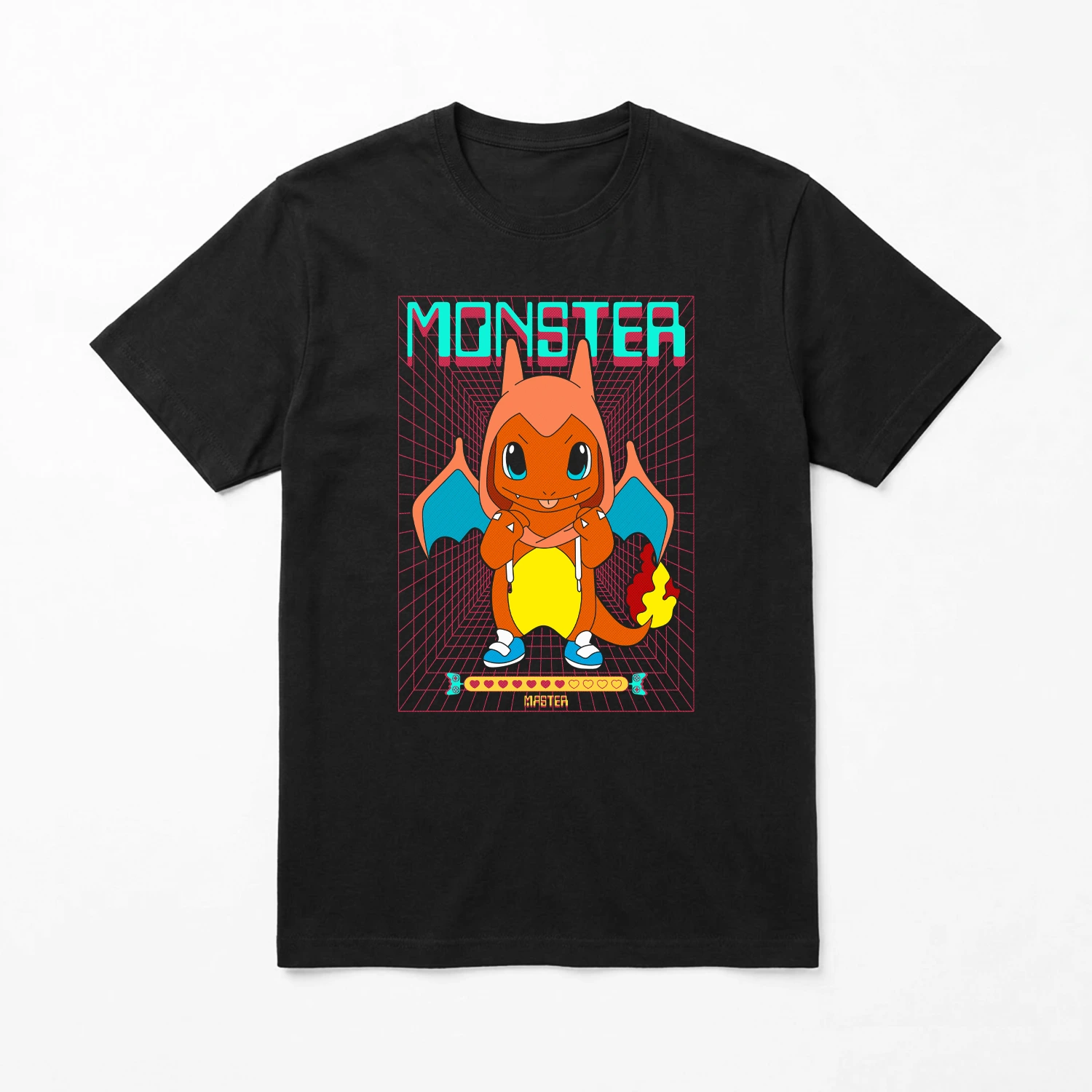 Affiche ton amour pour Pokémon avec ce t-shirt noir ultra stylé featuring Salamèche, prêt à enflammer tes soirées gaming ! 🌙✨