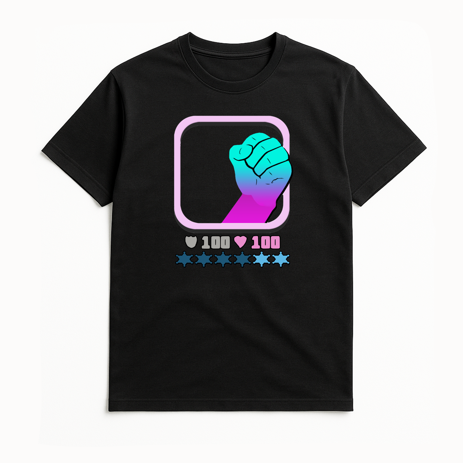 Plonge dans l’ambiance culte des années 80 avec ce t-shirt blanc inspiré de GTA Vice City, l’un des jeux les plus emblématiques de la licence. Le design reprend le logo du poing, ainsi que le HUD classique du jeu : points de vie, armure et les célèbres étoiles de niveau de recherche, pour un rendu authentique et nostalgique.